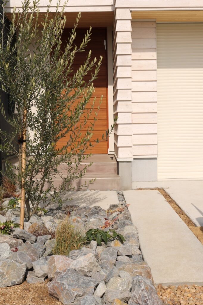 シンボルツリー兼、玄関扉前などの目隠しとして植えるのがおすすめ。樹形は様々あるので、多少金額がかかっても、職人さんや設計の人にかっこいものを選んでもらいましょう。